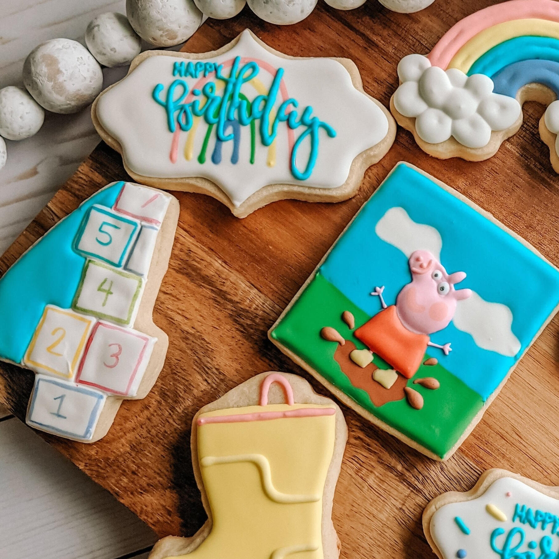- Our signature sugar cookies are soft, buttery, and baked from scratch, then hand-decorated with royal icing to bring your theme to life. From birthdays and baby showers to holidays and special milestones, each set is designed to perfectly match your celebration. Available with both traditional and dye-free icing options.• Cookie Cakes